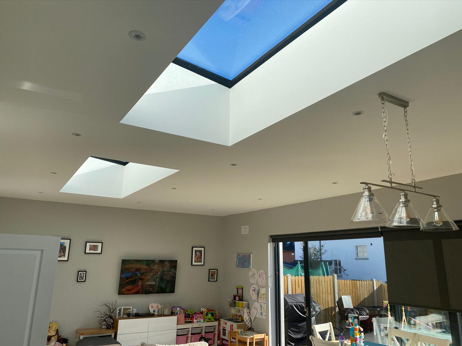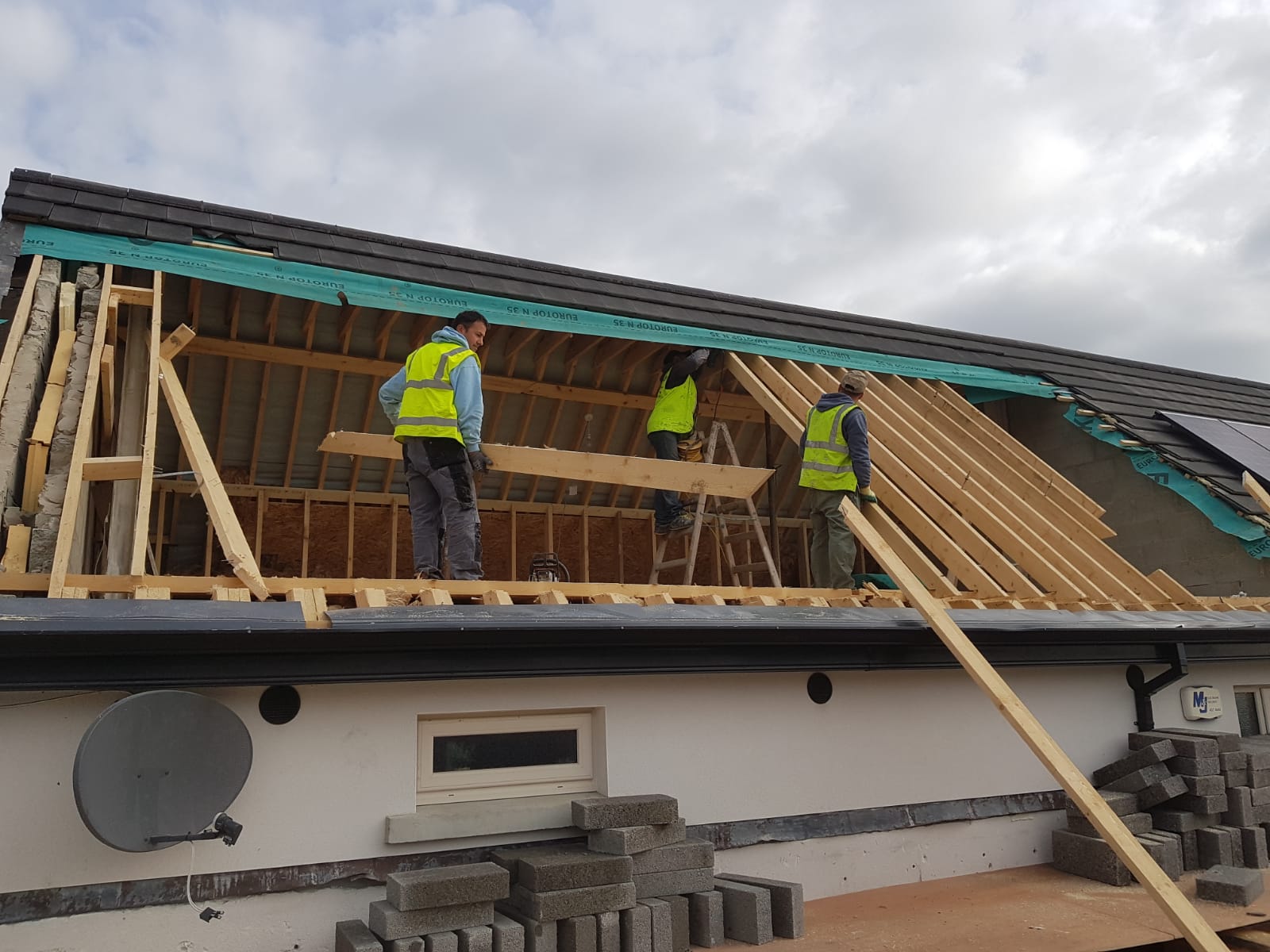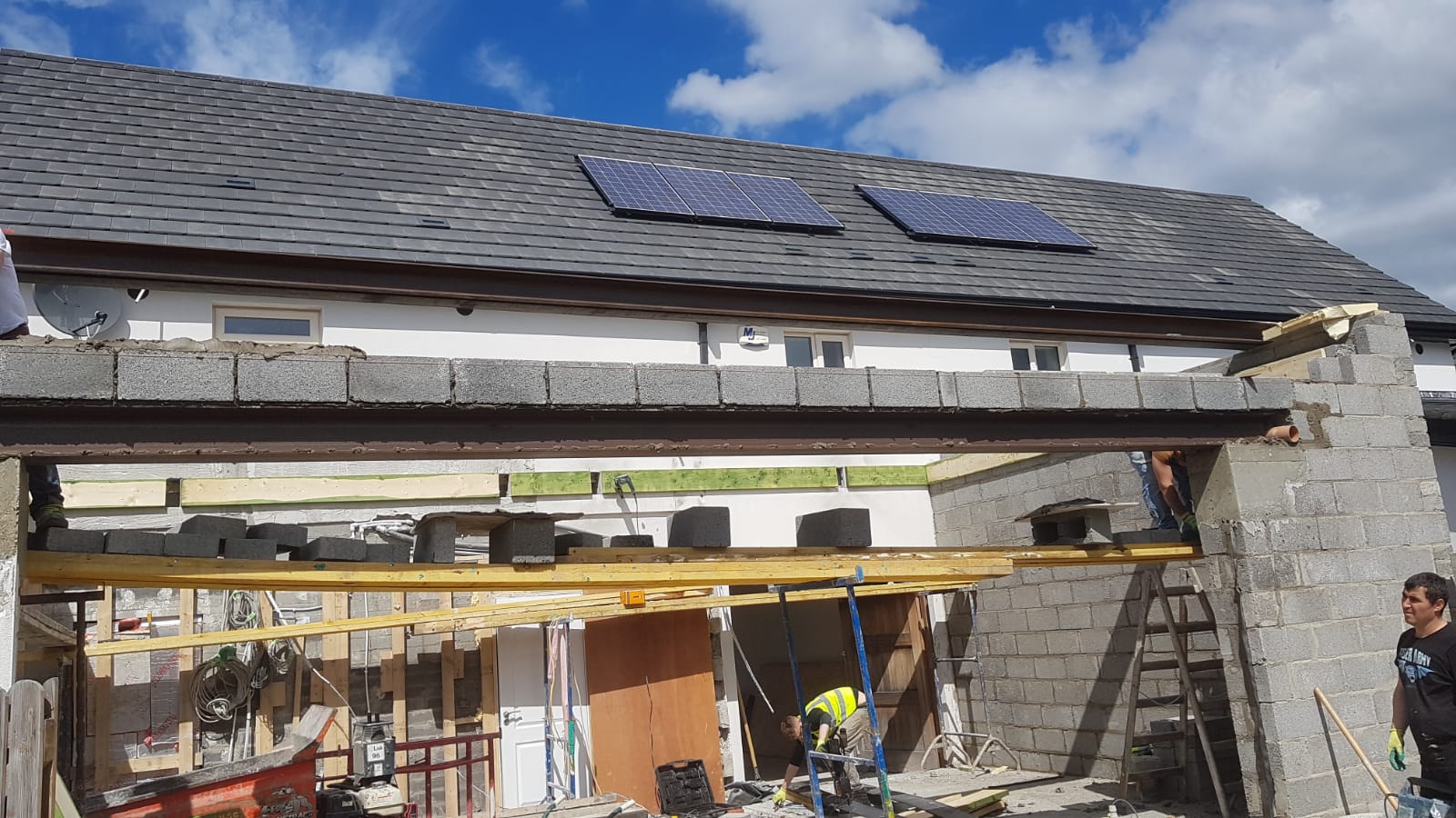 In the meantime, we did the structure work in the dormer upstairs, removed a section of the roof, fitted steelwork necessary for an attic conversion, instructed by the engineer. We then built the blockwork, added a flat roof with a fibreglass finish.