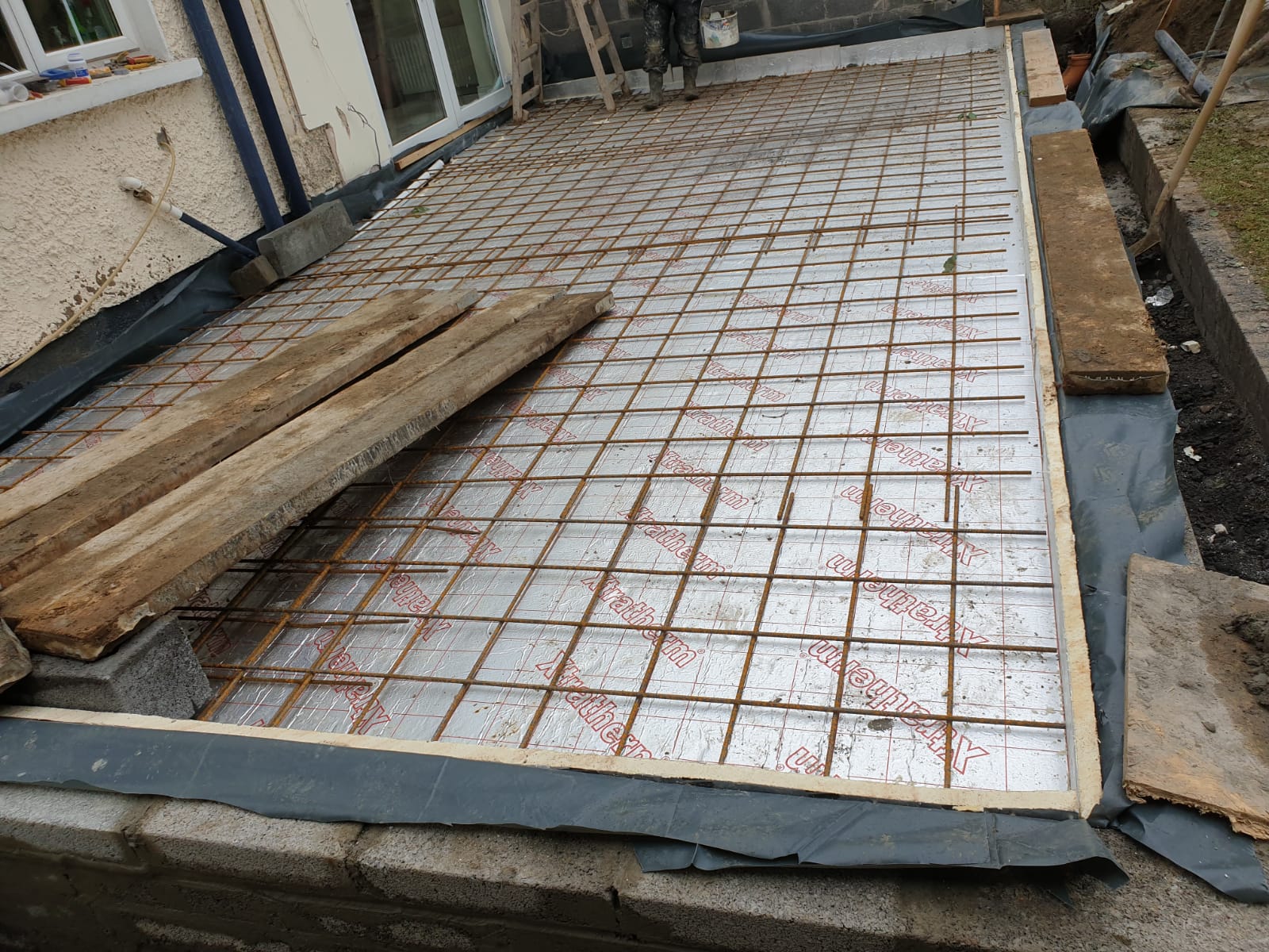 We laid the blockwork on the foundation, followed by insulation and 150mm concrete slab.